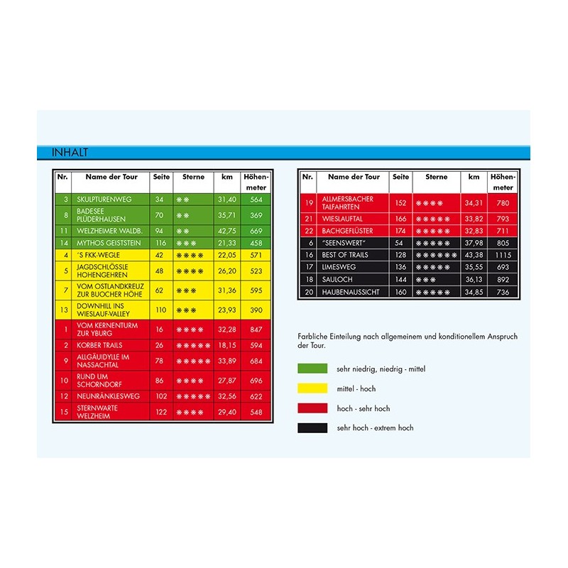 Dieser komplett überarbeitete Mountainbikeführer beinhaltet 22 Touren links und rechts der Rems, von ganz einfach (fahrbar auch für Mountainbikeanfänger), bis hin zu extremen Strecken, bei denen absolute Fahrsicherheit erforderlich ist. Dass das Remstal in den letzten Jahren zu einem echten Geheimtipp für Biker geworden ist, zeigen die vielen neu angelegten Wege. Steffen Schuck, Kenner der Bikeszene und Besitzer der Bikes ´n Boards-Läden, hat jeder Tour eine Sternchenbewertung gegeben. Die Schwierigkeitsgrade von ganz einfach bis zu extrem schwer sind farblich eingeteilt. Ein Infokasten gibt zudem Auskunft über Gesamtlänge, Höhenmeter, Konditionsanspruch sowie allgemeine Anforderungen extrem der Tour. Zusätzlich befinden sich auf der beigelegten CD die GPS-Daten aller Touren sowie nochmals alle Wegbeschreibungen zum Ausdrucken. Kurzum, ein Mountainbikeführer der allen Ansprüchen gerecht wird.