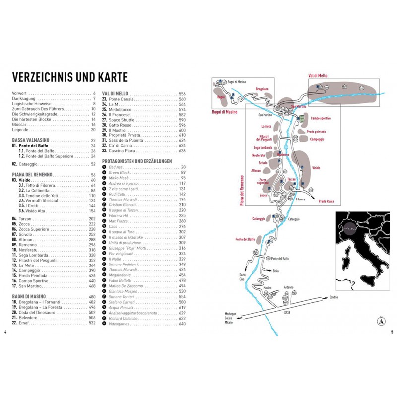 Folgende Gebiete werden im Führer behandelt: Ponte del Baffo, Piana del Renenno, Bagni di Masino, Val di Mello