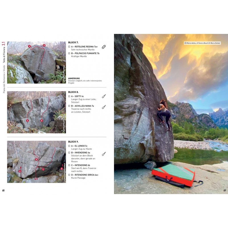 Die fünfte Auflage am des Boulderführers Val die Mello mit seinen angrenzenden Tälern zeigt, dass die Entwicklung in diesen Tal ungebrochen weiter voran schreitet. Beliebt ist das Gebiet nicht nur wegen der guten Infrastruktur, sondern auch wegen dem hier alljährlich stattfindenden Melloblocco, das größte Boulderfestival Europas.