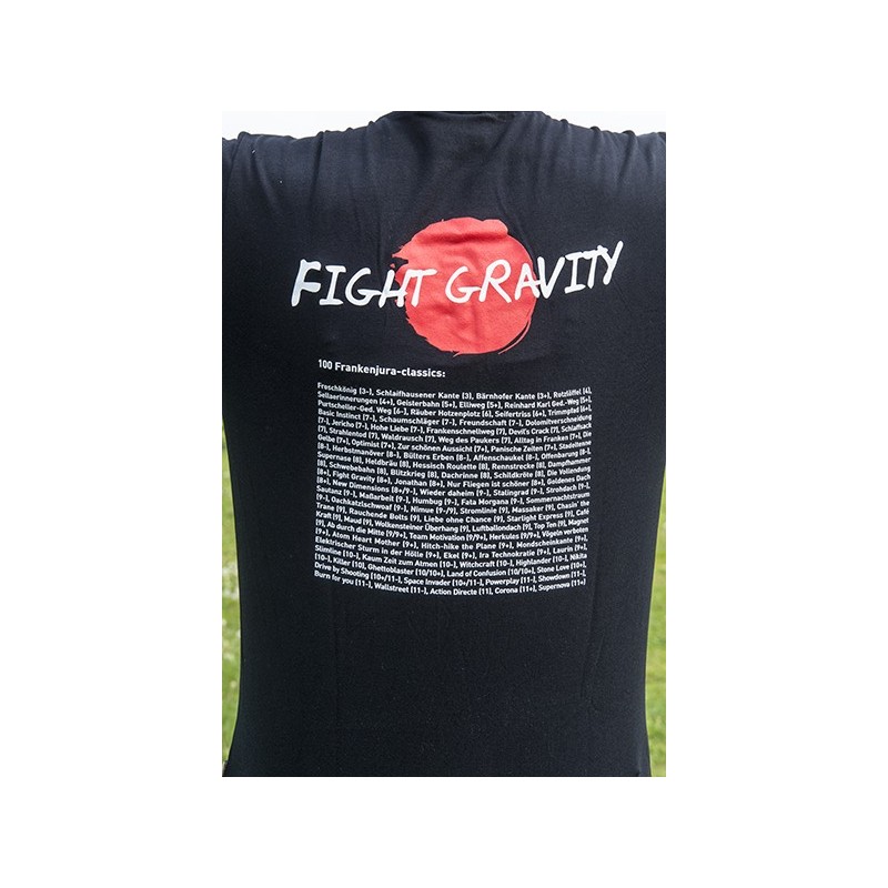 Zur neuen Klettersaison haben wir unsere Fight Gravity T-Shirts neu aufgelegt. Die "Top 100 Routenliste" der besten Routen des Frankenjuras wurde überarbeitet und aktualisiert. Die Shirts haben wir dieses Jahr in der Grundfarbe schwarz aufgelegt und uns für Baumwolle mit Lycra entschieden.