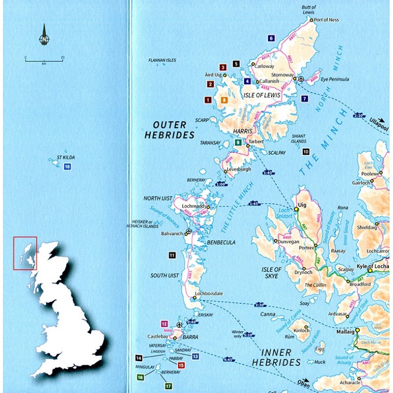 Das Wasser bzw. das Meer ist nie weit weg und das ist auch gleich das Besondere. Wer sich auf das Klettern auf dieser Inselkette einlässt, dem sind intensive und einzigartige Momente sowie einprägsame Erlebnisse garantiert. Die dem schottischen Festland vorgelagerten Inseln der Outer Hebrides bieten Klettermöglichkeiten zu Hauf. Allerdings sollte der Umgang mit mobilen Sicherungen solide beherrscht werden. Eingeteilt in 18 Gebieten helfen verbale Beschreibungen, Skizzen und Fototopos, sich in den jeweiligen Gebieten zu Recht zu finden. Einleitungen zu den einzelnen Inseln sind informativ, hilfreicher wären allerdings ein paar Angaben zum benötigten Sicherungsmaterial.