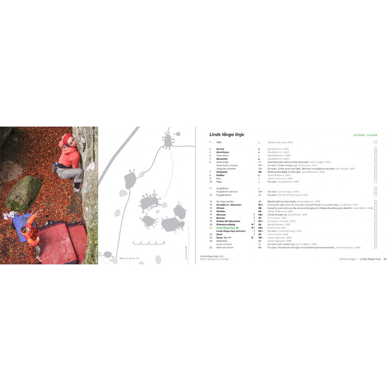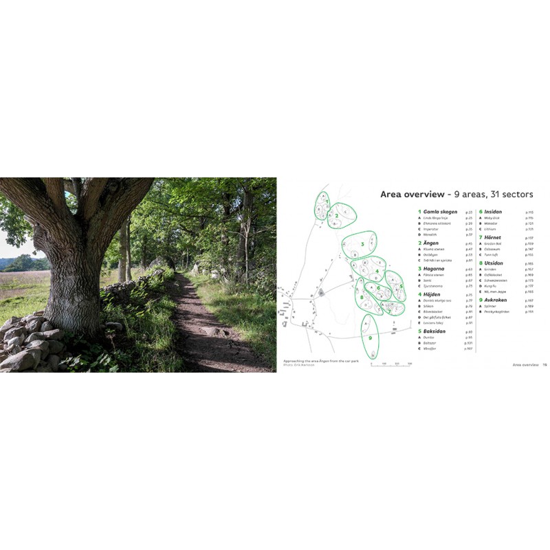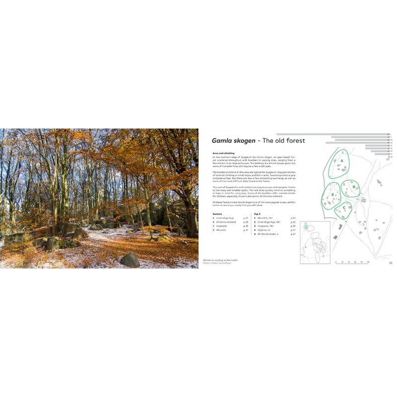 Auf 224 Seiten verteilen sich 9 Sektoren mit 1286 Boulderproblemen. Soweit die Fakten. Der Führer über Schwedens bestes Bouldergebiet erinnert von der Aufmachung stark an die Bleauführer von Bart van Raaij. Wer diese Führer nicht kennt, dem sei gesagt, dass sie einfach gut gemacht sind.