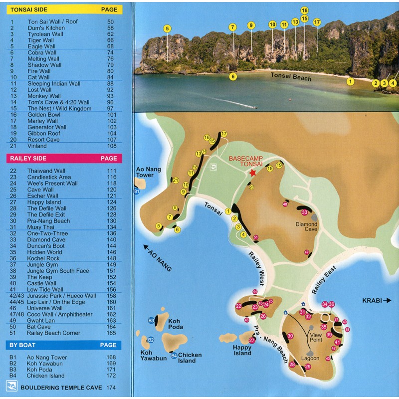 Es werden außerdem die Bouldermöglichkeiten auf Ko Tao beschrieben und natürlich jede Menge der Deep-Water-Soloing-Möglichkeiten vorgestellt. Es wird außerdem auf den Sanierungsstand hingewiesen, so dass man nur in wirklich sichere Routen einsteigt. Im Reiseteil sind darüber hinaus wichtige Infos zu finden, die man schon vor der Reise nach Thailand wissen sollte.