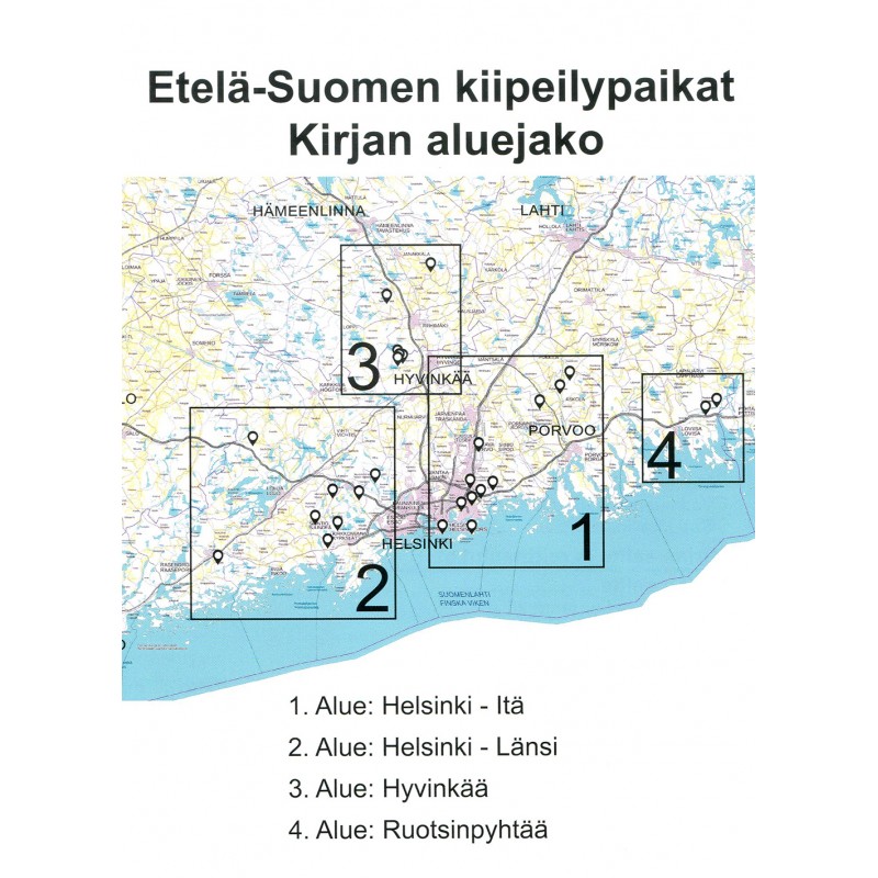Der erste von den dreibändigen Kletterführern über Finnland beinhaltet die Felsen rund um die Metropole Helsinki. Vorgestellt werden 28 Gebiete, die sich auf vier Regionen verteilen. Insgesamt kommt die Region auf ca. 600 abwechsulungsreiche Routen. Diese sind auf Fototopos eingezeichnet und die Gebiete mittels GPS-Koordinaten auch ohne Sprachkenntnisse zu finden. Für die Gebietsauswahl helfen Piktogramme sowie aussagekräftige Fotos.
