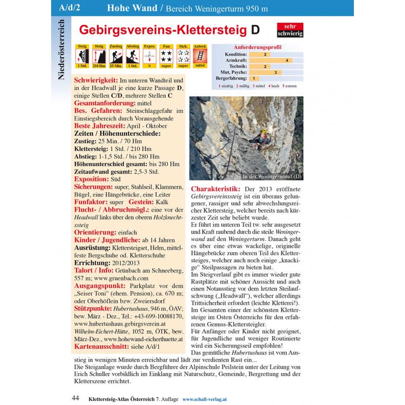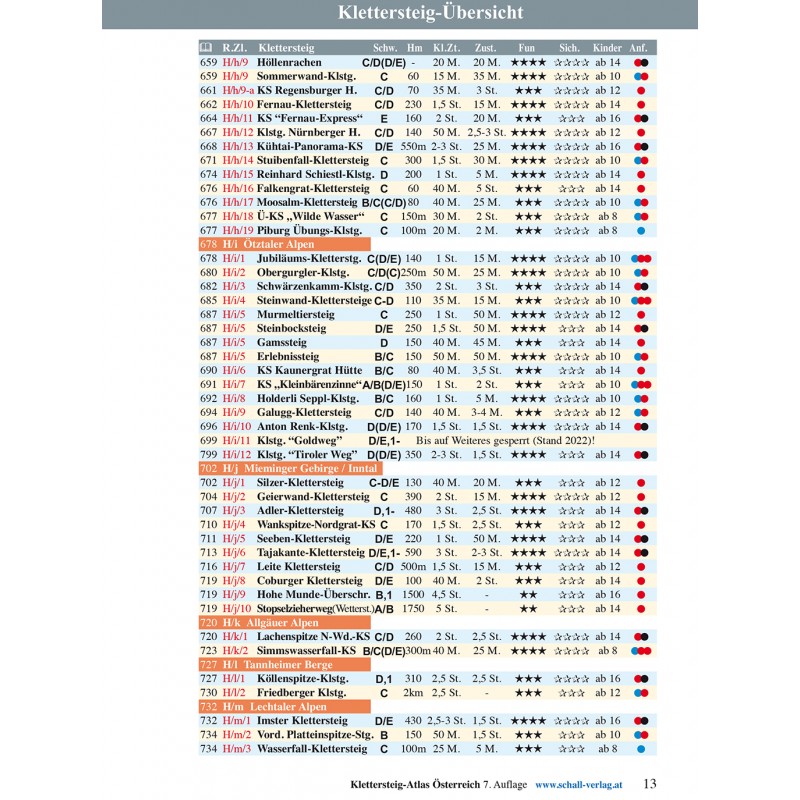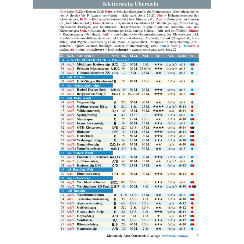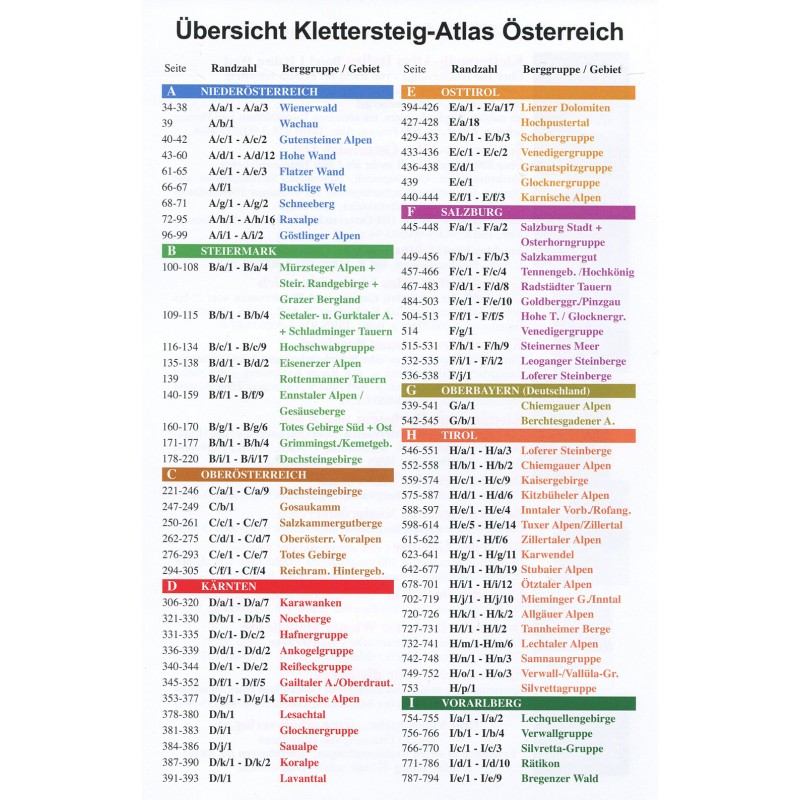 Neuauflage 2023. Mit über 500 Klettersteigen und gesicherten Steigen ist der Klettersteig-Atlas Österreich und grenznahen Steigen das neueste Werk, das den aktuellen Stand umfassend dokumentiert. Das praktische Ringbuchsystem eignet sich, um Tourenkarten (inkl. stabiler Schutzhülle) einzeln zu entnehmen. Selbstverständlich sind die vielen neu gebauten Steige der letzten Jahre in dieser überarbeiteten und stark erweiterten Auflage enthalten. Alle Steige werden mit modernen, präzisen, plastischen und aussagekräftigen Farbtopos und umfangreiche Detail¬informationen vorgestellt.