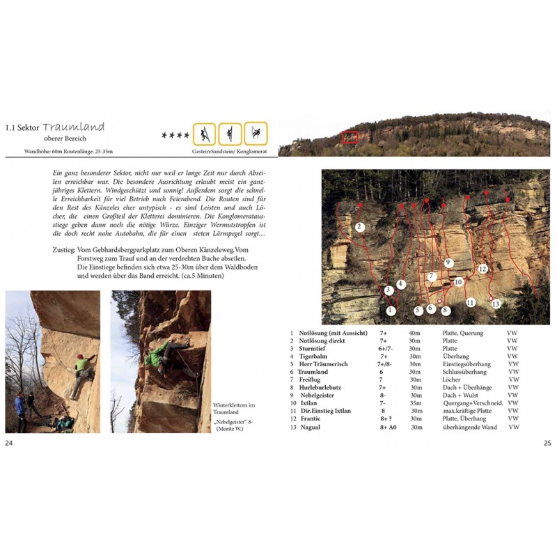 Abgerundet wird der Führer noch mit Infos zum Bouldern rund um den Gebhardsberg sowie zu den extrem beliebten Klettersteigen, die seit 2016 im hinteren Teil der Wand zu finden sind.