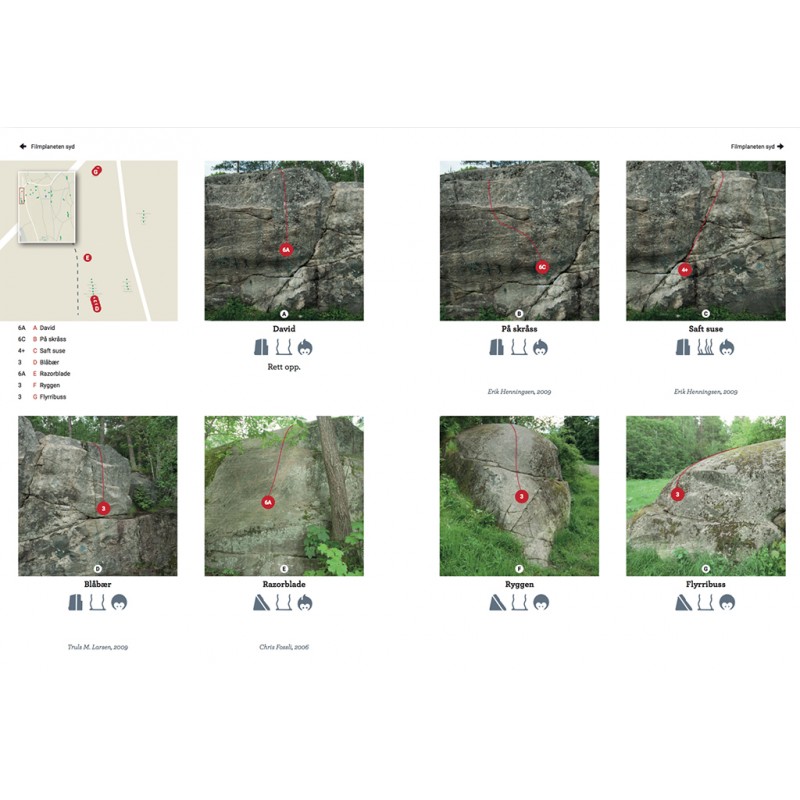 Der Führer stellt die Boulder mit Fototopos, Grafiken und Symbolen vor. Übersichtskarten geben Aufschluss über deren Lage, so dass die norwegischen Texte einen sehr geringen Teil im Buch ausmachen und der Führer trotz Sprachbariere eine gute Orientierungshilfe ist. Ein Register aller Boulder von Fb 3 bis Fb 7c+ schließt das Werk ab.