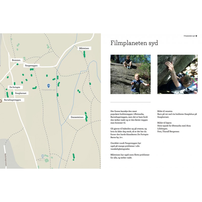 Östlich von Oslo liegt das Waldgebiet Østmarka. Eine nette Spielwiese, um sich an den 249 ausgewählten Blöcken seine Herausforderungen zu suchen. Da sich das Gebiet ideal für Kinder eignet und die Blöcke meist nicht riesig sind, ist es bei Familien sehr beliebt und entsprechend ist dieser Führer auch aufbereitet. Es ist außerdem in nur wenigen Gehminuten von Bus und U-Bahn erreichbar, wa ebenfalls zu seiner Beliebtheit beiträgt.