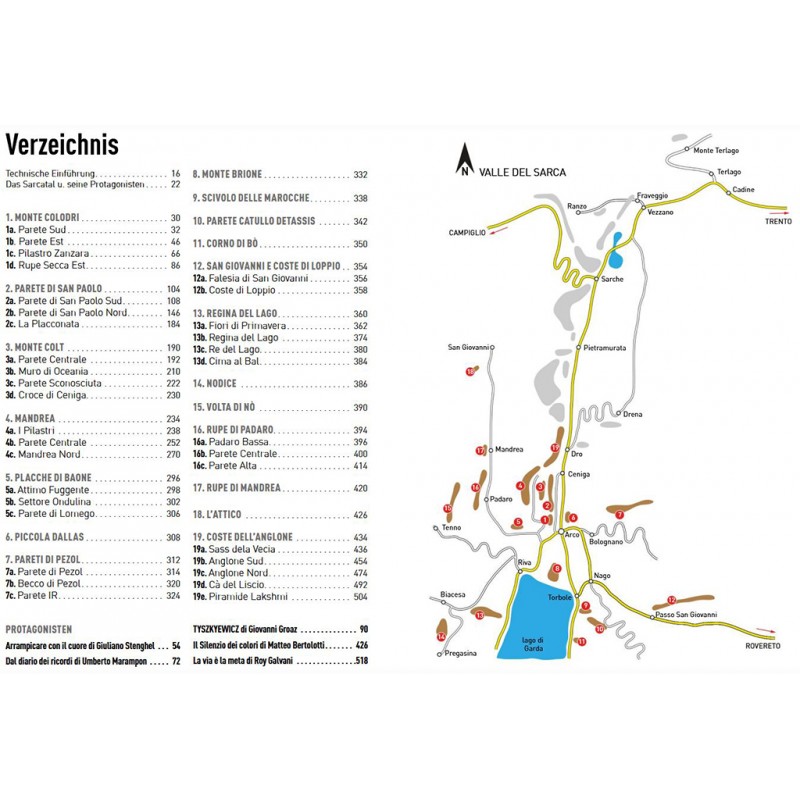 Das Gebiet umfasst die gesamte Region zwischen Gardasee und Valle dei Laghi; 23 neue Sektoren und 260 neue Routen sind seit der vorherigen Ausgabe hinzugekommen, so dass der Führer in zwei Bänden erscheint.