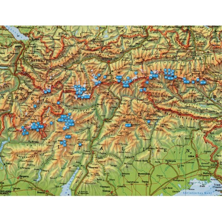 Bergell, Berninagruppe, Albula-Alpen, Sesvennagruppe, Orlergruppe, Adamello- und Presanellagruppe, Brentagruppe, Dolomiten, Sivrettagruppe, Ötztaler Alpen, Stubaier Alpen, Zillertaler Alpen, Rieserfernergruppe, Venedigergruppe, Glockner- und Granatspitzgruppe sowie Ankogel- und Goldberggruppe