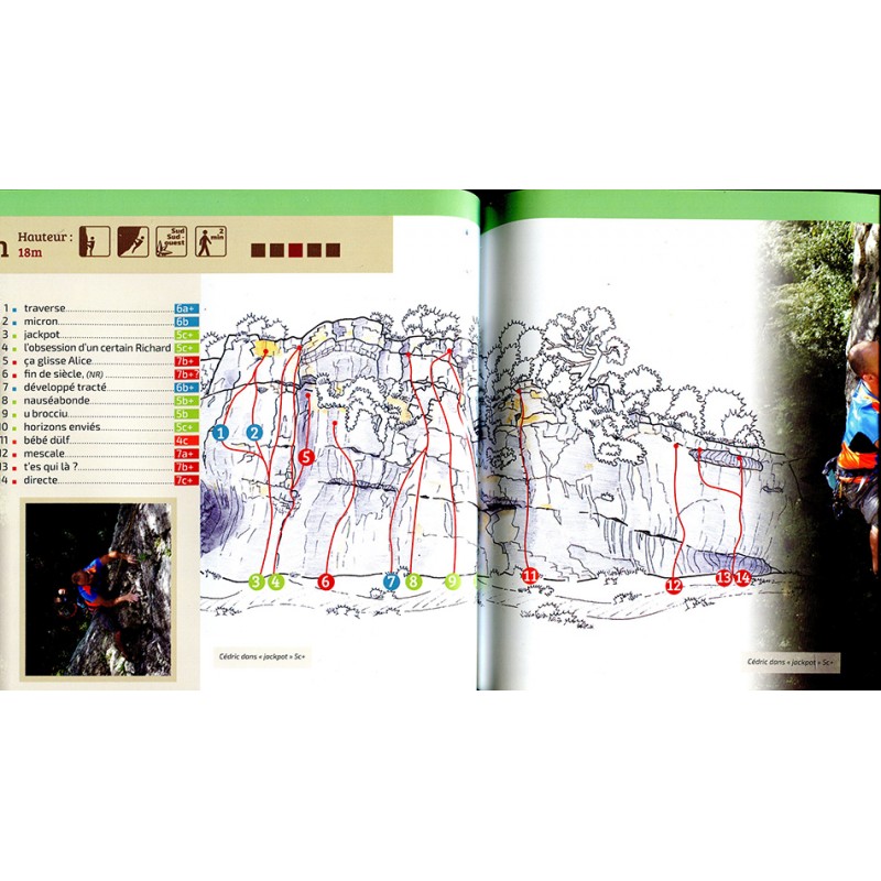 Der Kletterführer ist durch detaliert gezeichnete Topos, Pictogramme und farbliche Streifendiagramme prima verständlich und eine hilfreiche Orientierungserleichterung.