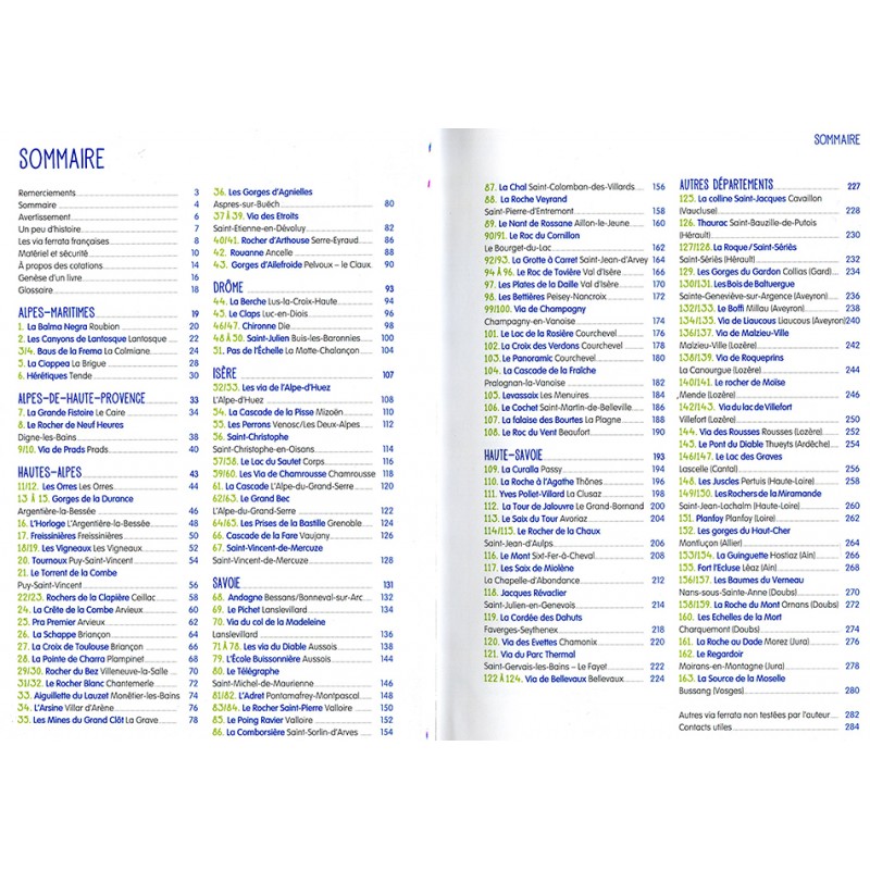 Atemberaubende Landschaften aus luftigen Höhen, tiefeingeschnittene Schluchten, weite Blicke übers Land… in 163 Klettersteigen ist von Nîmes bis Besançon, einschließlich des gesamten Zentrums Frankreichst und der Alpen vielseitiges Abenteuer beschrieben.