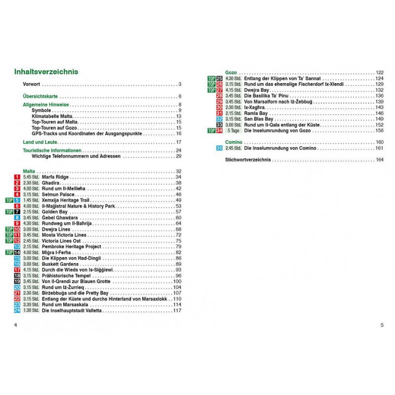 Jeder Wandervorschlag enthält alle wichtigen Infos zur Tour, exakte Wegbeschreibungen, detaillierte Wanderkärtchen und aussagekräftige Höhenprofile. GPS-Daten stehen bereit. Eine Übersicht über die Top-Touren erleichtert die Tourenauswahl und viele Fotos stimmen auf den Urlaub auf den sonnenverwöhnten maltesischen Inseln ein.