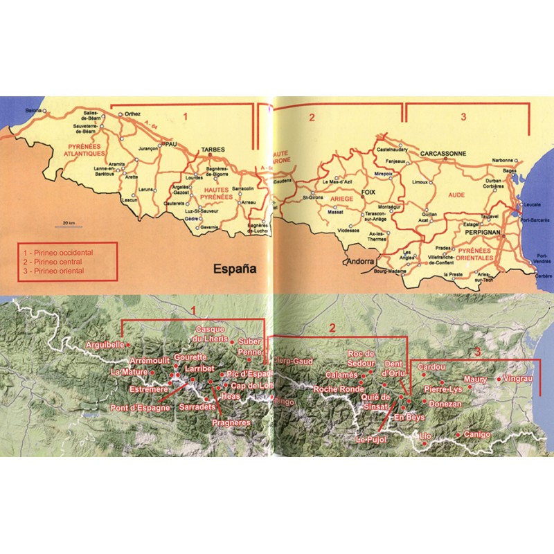 Die atemberaubenden erhabenen Wände der Pyrenäen lassen jedes Klettererherz höher schlagen. In diesem fein gestalteten Kletterführer werden 30 Mehrseillängengebiete entlang des nördlichen Pyrenäenkamms vorgestellt. Die Gebiete teilen sich auf die Occidentalen, die Centralen und die Orientalen Pyrenäen auf. Die schwersten Routen erreichen den franz. Schwierigkeitsgrad 6a, die meisten Touren sind jedoch im 5. Grad zu haben. Die insgesamt mehr als 350 Seillängen befinden sich in Klettergärten bis hin zur Hochgebirgstour. Alle Routen haben eine ausführliche Beschreibung auf spanisch (hier könnte eine Übersetzungsapp hilfreich sein), desweiteren wird jede Tour in einem Fototopo und einem graphischen Topo vorgestellt, welche die Info´s über Routenverlauf, Absicherung, Länge der SL, Stände und Routen preisgeben.