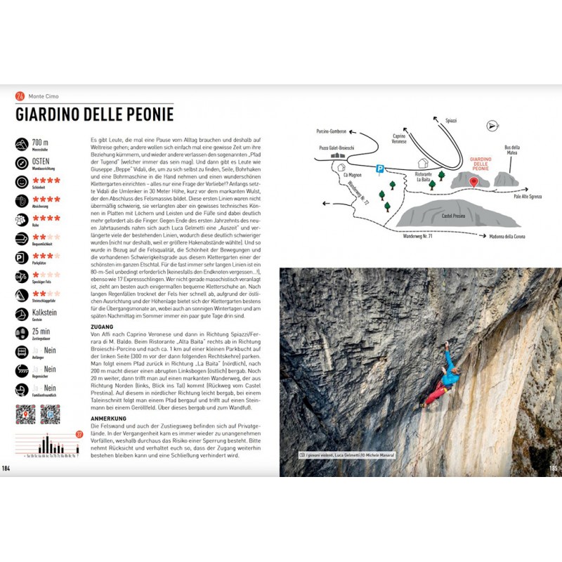 „Verona Rock“ ist eine vollständige und gut aufbereitete Beschreibung aller bekannten Klettergebiete der Region inklusive den klassischen Gebieten „Ceredo“ und „Sengio Rosso“. Hervorgegangen ist der Führer aus „MONTE BALDO Rock“ und beschreibt die Klettergärten zwischen Gardasee, Monte Baldo, Etschtal, Valpolicella, Valpantena und Monti Lessini. Mit dabei sind auch bisher weniger bekannte Felsen, die bisher nahezu ausschließlich von Gebietskennern besucht wurden und sich als Alternativen für überlaufene Sektoren anbieten.