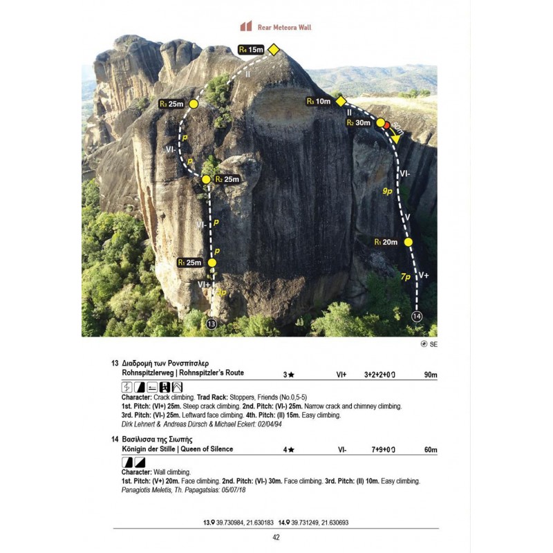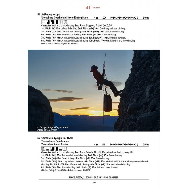 Wichtig in Meteora sind die Angaben zur Absicherung, auf die in diesem Führer wert gelegt worden ist und so sind die Anzahl der Haken jeder Seillänge direkt neben den Schwierigkeitsgraden zu finden. So ist mit diesem Führer das Erlebnis "Klettern in Meteora" deutlich einfacher zu verwirklichen.