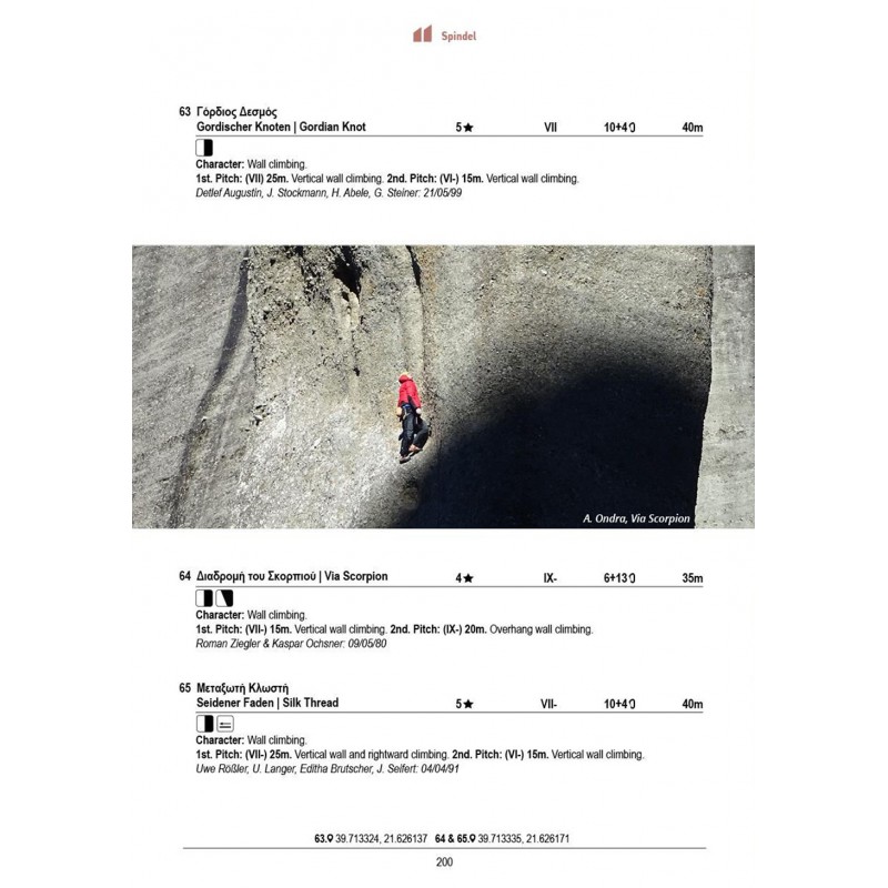 Dieser Führer beschreibt sowohl traditionelle als auch moderne Kletterrouten im griechischen Konglomerat-Klettergebiet Meteora. 46 der 171 Meteoratürme werden auf Fototopos sowie mit Beschreibungen ausführlich vorgestellt. Konkret sind es 206 Mehrseillängenrouten der schönsten Routen. An den sechs verbliebenen Türmen mit den verbliebenen Klosteranlagen ist das Klettern verboten. Aber auch an allen anderen Wänden sind mehr als genug Auswahl vorhanden.