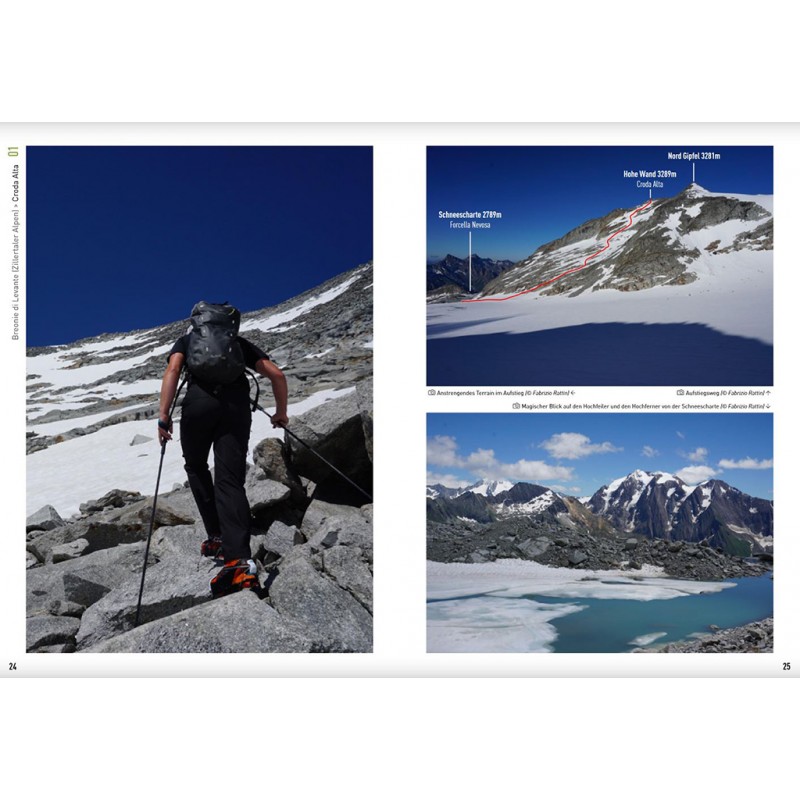 Und schließlich ist für jede Jahreszeit die richtige Tour dabei: Beide Bände enthalten Touren im zentralen Alpenbogen in größerer Höhe mit Schnee und Eis, die für den Hochsommer gedacht sind sowie Touren in den Berggruppen näher an der Poebene, die daher bis zum Spätherbst oder in niederschlagsarmen Wintern geeignet sind.