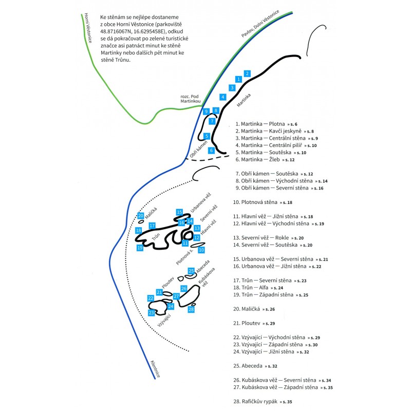 Nördlich von Wien knapp hinter der Tschechischen Grenze besteht in der Nähe des Stausees Nové Mlýny die Möglichkeit zum Klettern. Diese Broschüre stellt die bis zu 70 Meter hohen Kalkfelsen vor, greift dabei besonders auf historische Besteigungsdokumente zurück. Die Routenauswahl ist nicht riesig und einige der Wände sind erst ab dem 15. August zum Klettern freigegeben. In manchen Routen müssen zusätzlich Keile zur Absicherung gelegt werden. All diese Umstände machen Pálava zu einem Gebiet von eher lokaler Bedeutung.