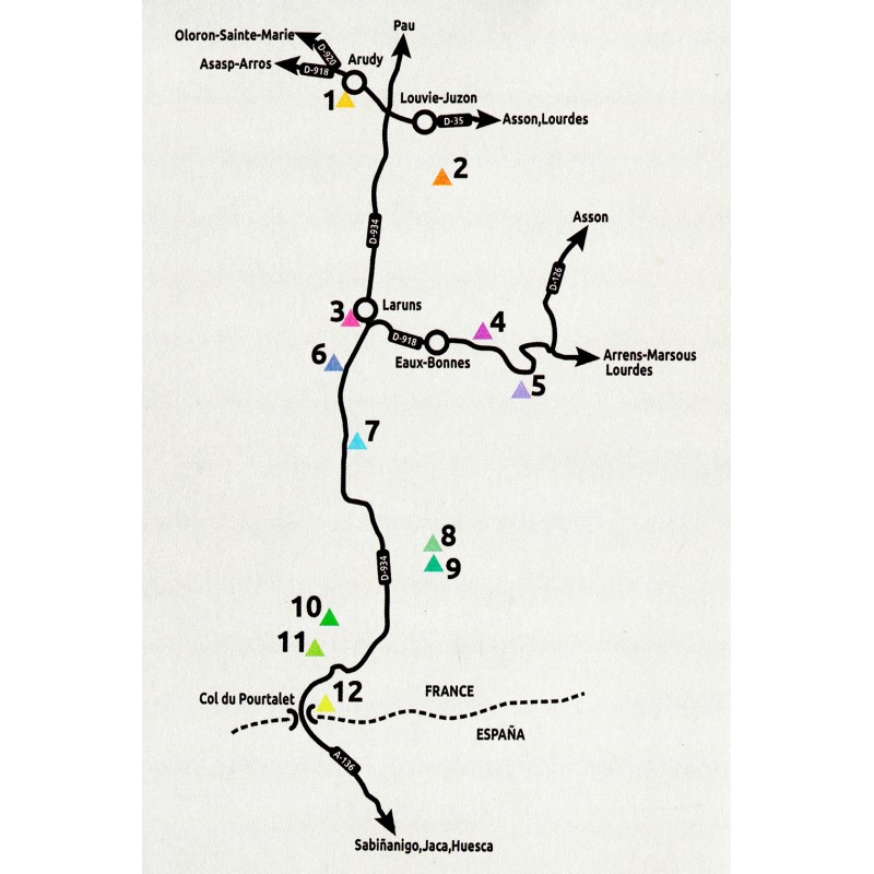 Aufgeteilt in zwölf Gebiete mit allen notwendigen Informationen in Form von Piktogrammen, Kurztexten und Topos kann das Vallée d‘Ossau aus der Sicht des Kletterers erkundet und genossen werden.