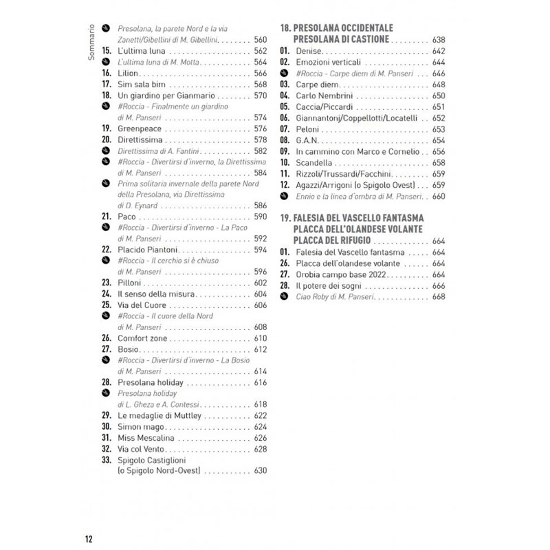 Die Routenauswahl an meist langen Routen ist groß, die an Sportkletterrouten oder Klettergärten eher die Ausnahme. Fototopos, Wandfotos und gezeichnete Skizzen helfen bei der Orientierung. Weiterführende Informationen sind den italienischen Texten (lass dir von einer Übersetzungs-App helfen) zu entnehmen.