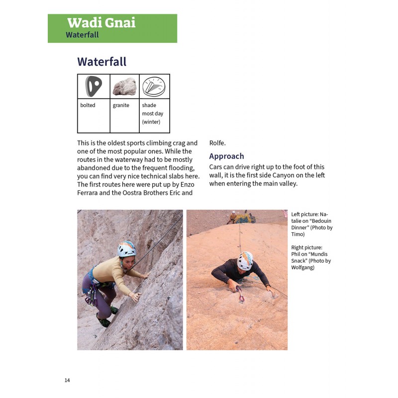 Der Führer beschreibt die verschiedenen Wadis mit einleitenden Texten, Übersichtskarten, Piktogrammen und Fototopos. QR-Codes führen zu weiteren nützlichen Informationen. Eine ausführliche Einführung zum Reisen und zur Kultur des Sinai machen Lust auf die Reise in diese für viele noch unbekannte Kletterdestination.