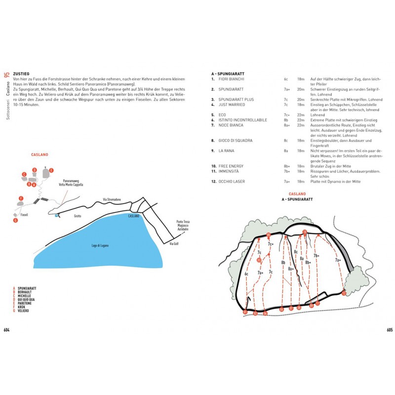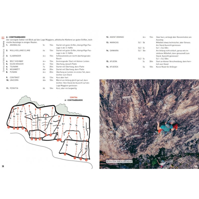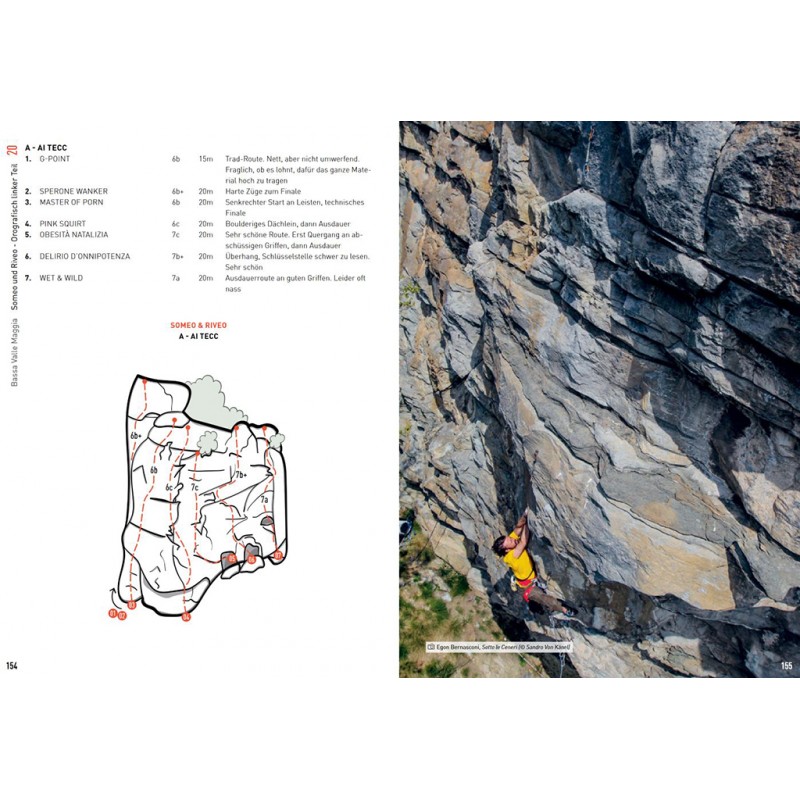 Die Gebiete werden ausführlich mit Topos, Piktogrammen, Übersichtsskizzen und kurzen Texten beschrieben. Eine Sternchenbewertung erleichtert die Auswahl unter den vielen Gebieten und die Kletterbilder vermitteln nicht nur einen zusätzlichen Eindruck von den Gebieten, sondern machen auch Lust auf den nächsten Trip ins Tessin. Wer zwischen Gotthard und Comer See Gneis und Granit unter die Finger nehmen will, ist mit diesem ausführlichen Werk gut beraten. Eine gute Alternative zum doch eher hochpreisigen (aber sehr gut gemachten) SAC-Kletterführer Tessin (siehe unten).
