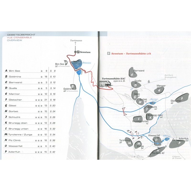 Das Turtmanntal ist bekannt für den höchsten erwanderbaren 3.000er der Alpen, dem Barrhorn (3.610 Meter). Auf dem Weg dort hin kommt man an der Turtmannhütte vorbei. Der Hüttenwirt Fredy Tscherrig hat in diesem kleinen Führer die Klettermöglichkeiten rund um seine Hütte, aber auch am Stausee in der Nähe des Parkplatzes (Parkuhr für Übernachtung) zusammengestellt.