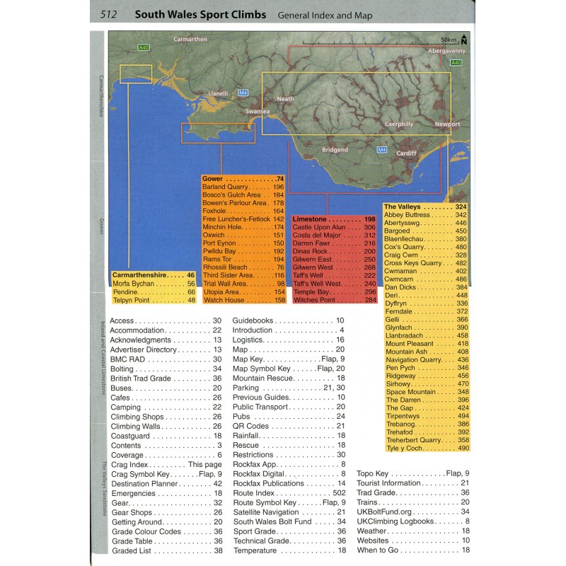 Der Kletterführer „South Wales Sport Climbs“ deckt das Gebiet südlich der Brecon Beacons ab und erstreckt sich weiter über die Seeklippen am Fluss Wye an der walisischen Grenze bis nach Pembrokeshire im Westen. Das Gebiet beherbergt eine Fülle von Sportklettergebieten (mit Haken eingerichtet), die von kleinen Steinbrüchen im Landesinneren bis hin zu ausgedehnten Kalksteinfelsen am Meer reichen.