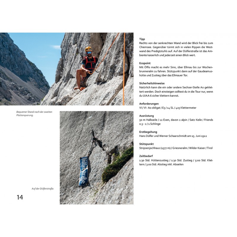 Großformatige Übersichtsbilder zeigen die beeindruckenden Berge, und mit den dazugehörigen detailierten Toposkizzen lässt sich bereits vorab der Routenverlauf erarbeiten. Hakengenaue Topos und die dazugehörigen Beschreibungen fehlen natürlich nicht. Herrliche Bilder zeigen die Schönheit der Natur und vermitteln die Stimmung auf Tour. Es werden hauptsächlich Touren in den Ostalpen beschrieben, mit einem kleinen Schlenker in die Schweiz.