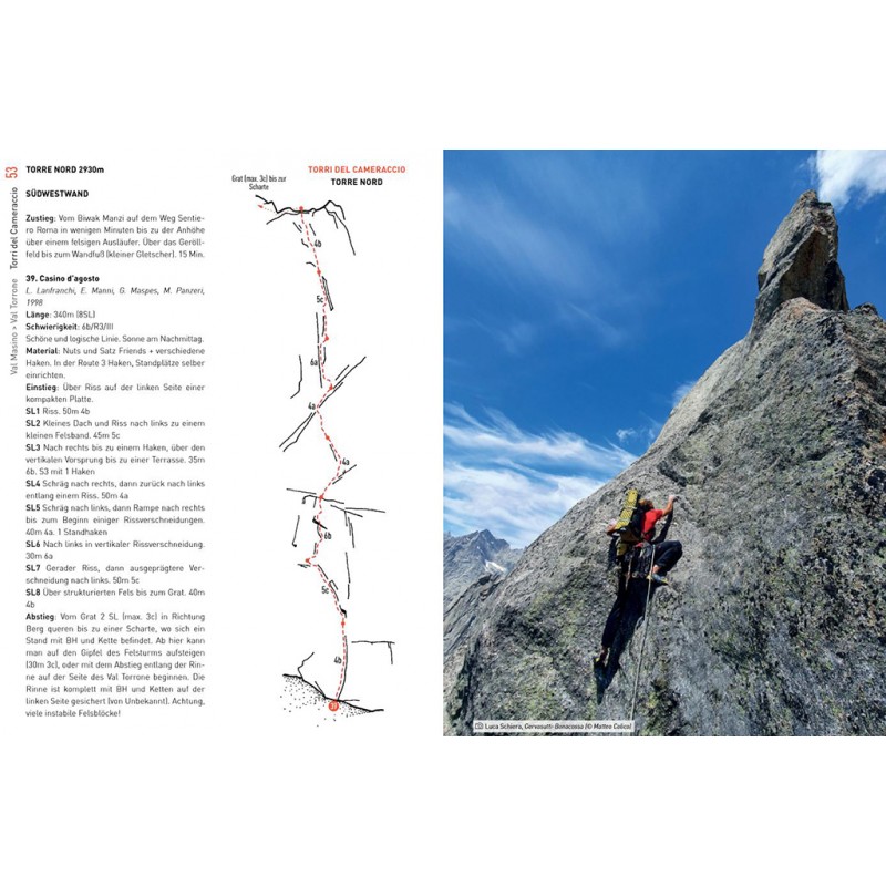 In den letzten Jahren hat sich in den Tälern des Val Masino viel getan, was nicht nur zur Realisierung neuer Linien, sondern auch zur Wiederentdeckung zahlreicher Routen aller Schwierigkeitsgrade geführt hat. Von normalen Routen bis hin zu den schwierigsten Linien in den Zentralalpen, die in diesen neuen Führer aufgenommen wurden, waren viele Informationen in die Jahre gekommen und es war dringend notwendig, den aktuellen Stand zu dokumentieren. Immerhin waren seit der Drucklegung der alten Auflage von „Nichts als Granit“ inzwischen 10 Jahre vergangen. 59 Gebiete sind nun in dieser Auflage zu finden. Für jede Tour sind alle nützlichen Information hinsichtlich Zugang, Absicherung, Material sowie Abstieg enthalten. Bei den langen Routen wurde auf ausführliche Beschreibungen Wert gelegt.