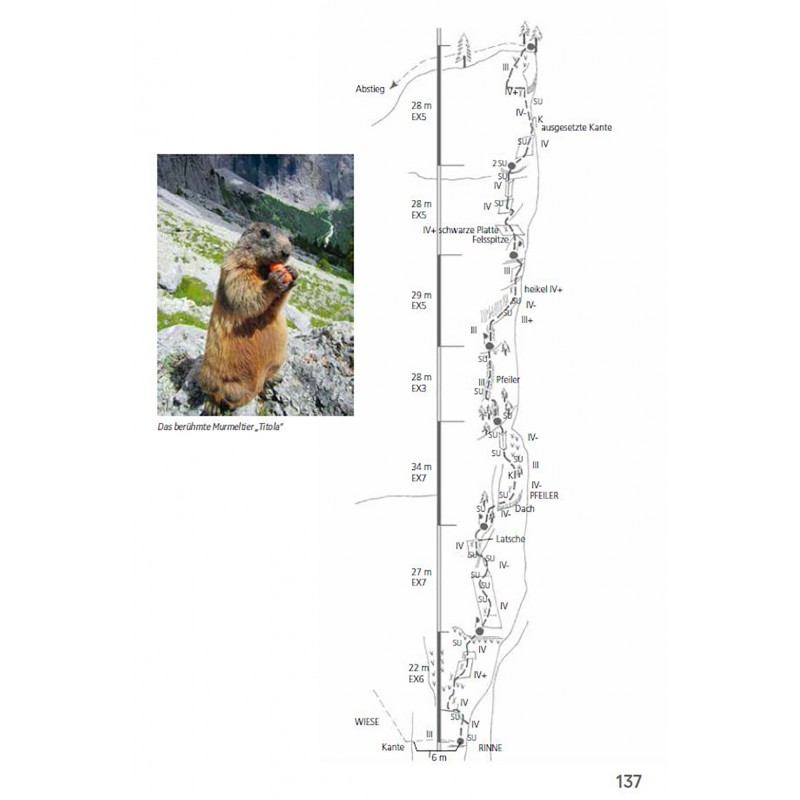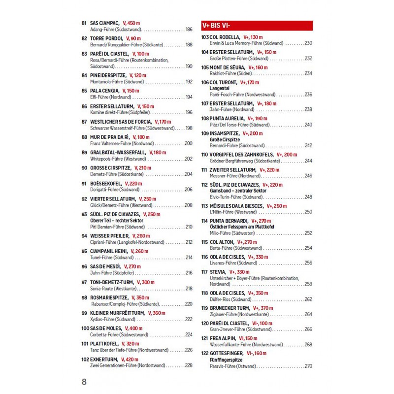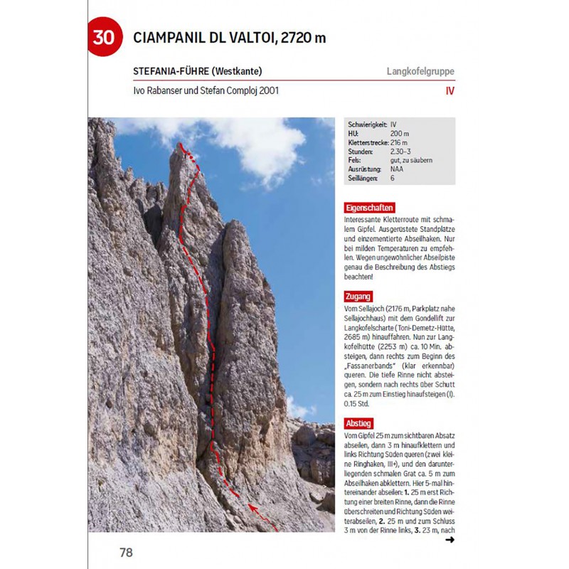 In diesem Kletterführer werden die 150 schönsten Kletterrouten in den Dolomiten, speziell in Gröden und Umgebung vorgestellt. Die einzelnen Routen sind nach Schwierigkeitsgraden unterteilt und bis auf wenige Ausnahmen bis zum sechsten Grad. Die Beschreibungen beinhalten übersichtliche technische Daten wie Höhenunterschied, Routenverlauf, Seillängen, Gehzeiten u.a. sowie detaillierte Beschreibungen und Skizzen. Der Verlauf der Tour ist einerseits auf Fotos und andererseits in detaillierten Topos eingezeichnet – Seillänge für Seillänge.