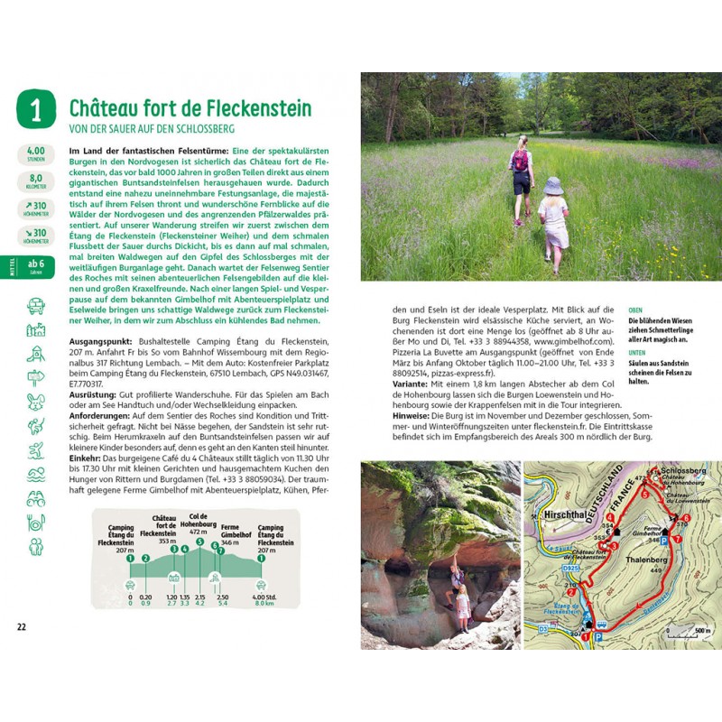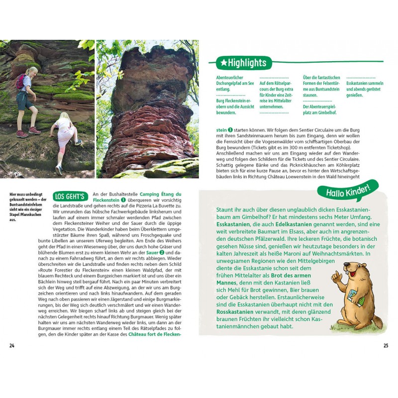 Das Elsass und die wildromantischen Vogesen haben für naturliebende, kletternde Familien auch abseits der Routen viel zu bieten. Dieser Erlebniswanderführer stellt 40 Wandertouren vor, die von Kindern getestet wurden und die Herzen von Familien höherschlagen lassen. Abenteuerliche Felsenwege, klare Bergseen, geheimnisvolle Ritterburgen und die hohen Berge der Vogesen warten darauf, von kleinen und großen Abenteurern entdeckt zu werden.
