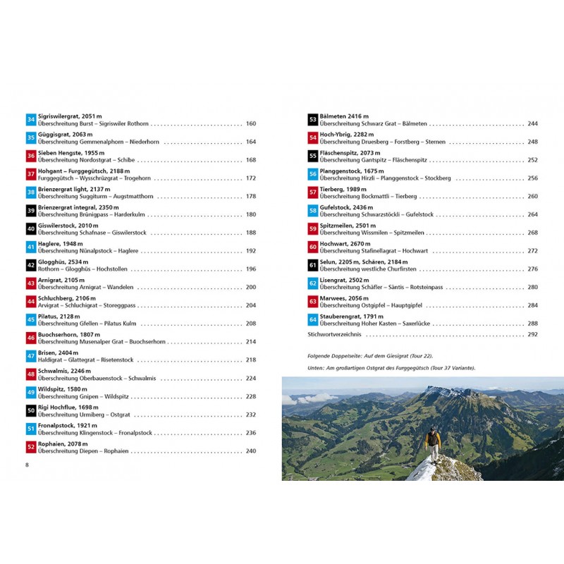 Dieser Auswahlführer präsentiert 64 Panorama-Touren der Extraklasse zwischen Genfersee und Bodensee. Ob gemütlicher Höhenweg für Einsteiger oder luftiger Grat für geübte Alpinwanderer – für jeden Anspruch ist die passende Tour dabei. Die meisten Wanderungen sind als Tagestouren angelegt, doch oft laden urige Hütten in traumhafter Lage zum Übernachten ein. So lässt sich der Tag auf dem Grat genussvoll verlängern.