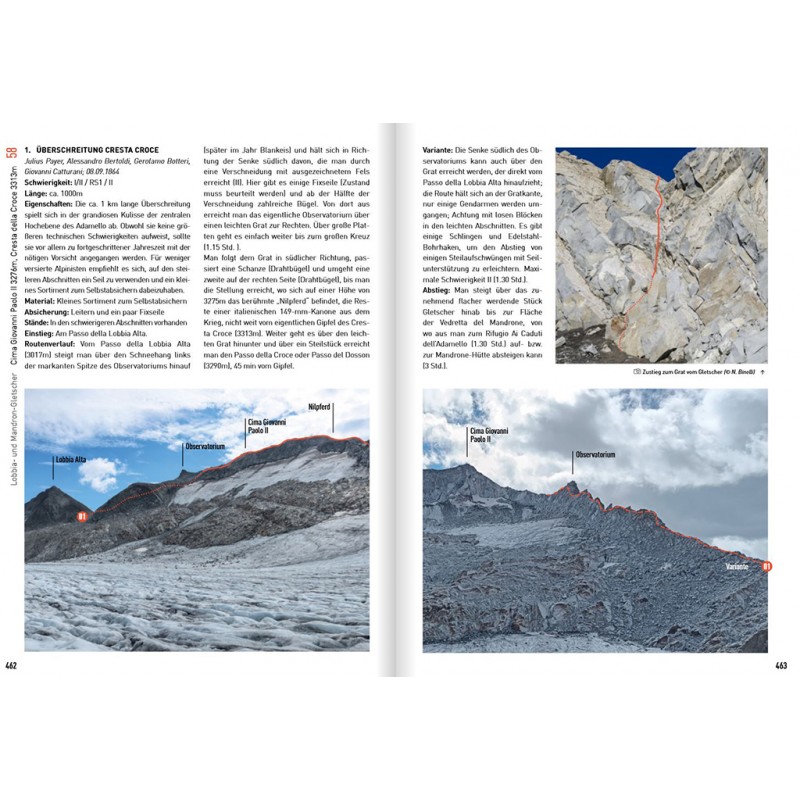 Mit seinen riesigen, von Gletschern aus dem Quartär geformten Tälern, seinen kilometerlangen, gezackten Kämmen, die sich vom vergletscherten Hochplateau in die Ferne erstrecken, seinen silbernen Tonalitwänden und einem Hauch von Unendlichkeit – fast schon ein Markenzeichen dieses Gebirges – ist das Adamello ein schlicht magischer Ort zum Klettern. Südlich von Ponte di Legno gelegen ist die Anreise meist nicht all zu weit und die fast 330 beschriebenen „Himmelsleitern“ auf der Ostseite des Massivs bieten einen einzigartigen Spielraum für Naturbegegnungen, Erlebnisse und Klettererlebnisse.