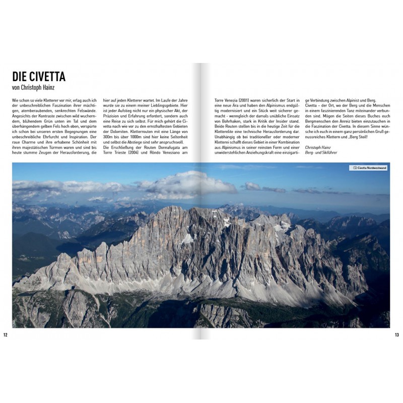 Die Südseite der Civetta ist eine äußerst komplexe Gebirgslandschaft. Auf topografischen Karten ähnelt das Hauptmassiv einer riesigen Kralle, deren drei Glieder in Richtung Süden und deren viertes Glied in Richtung Norden ausgerichtet sind. Die Gipfel im Süden sind weniger hoch, weshalb der Zugang aus dieser Richtung auch der bequemste ist. Dennoch trifft man hier auf sehr hohe, senkrechte Wände und Felsformationen aus kompaktem Kalkstein. Spitze Zinnen und Nadeln, schlanke Türme, klotzige Pfeiler und isolierte Gipfel kennzeichnen zwar die gesamten Dolomiten; aber selbst die berühmtesten von ihnen sind im Vergleich zum Torre Trieste (ca. 700 Meter hoch) oder zur Busazza-Kante (ca. 1100 Meter hoch) eher kleine Grenzsteine.