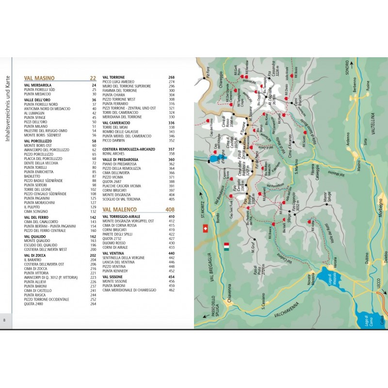 Das behandelte Gebiet zeigt sich weitläufig und dementsprechend vielseitig und abwechslungsreich: Es erstreckt sich von den Südseiten der Gruppe - dem Val Masino und seinen Verästelungen - bis hin zu den nördlichsten Gebieten - wie das Valle dell'Albigna, das Val Bondasca, das Val Codera und Val dei Ratti.