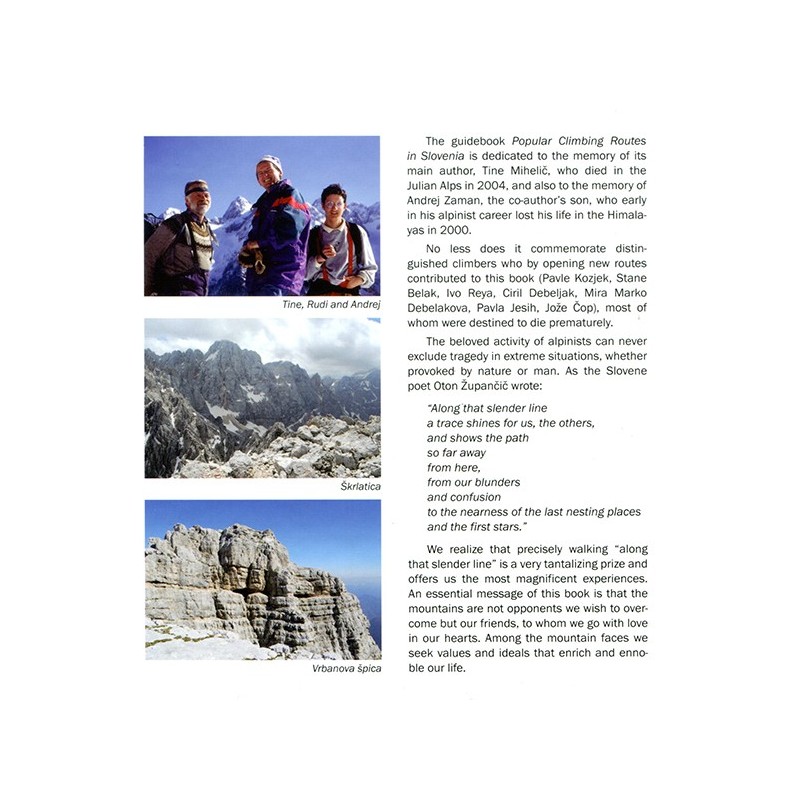 Wer in Slowenien längere Routen klettern möchte, findet in diesem Hardcoverbuch eine enorme Auswahl an Routenvorschlägen. Alle Texte sind auf Englisch verfasst und es sind alle notwendigen Informationen enthalten, um sich eine passende Route auszusuchen und natürlich auch zu begehen. Die beigefügten Toposkizzen sind relativ einfach gehalten und zu einigen Routen stehen Wandfotos zur Verfügung. Bei den Fotos findest du das Inhaltsverzeichnis mit der Auswahl an Routen für eine erste Orientierung.