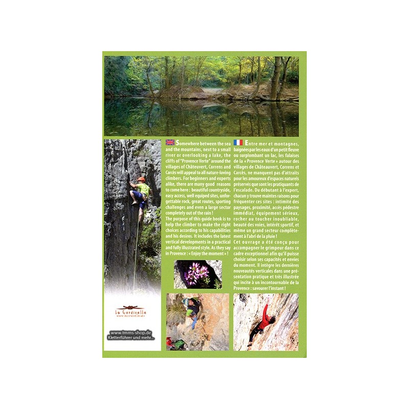 Naturliebhaber fühlen sich um die Dörfer Châteauvert, Correns und Carcès wohl. Gut abgesicherte Sportklettereien in allen Schwierigkeitsgraden, ein kurzer Zugang, ein Fluss zum Abkühlen oder ein Bad im Lac de Carcès und nicht zuletzt der häufig anzutreffende raue Kalksandstein machen diese Region zu einem interessanten Kletterziel. Zahlreiche Fototopos, kurze Routenbeschreibungen sowie Piktogramme machen die Orientierung und Auswahl der Routen mit diesem Führer denkbar einfach, in dem alle Entwicklungen bis zum Erscheinungstermin berücksichtigt wurden.