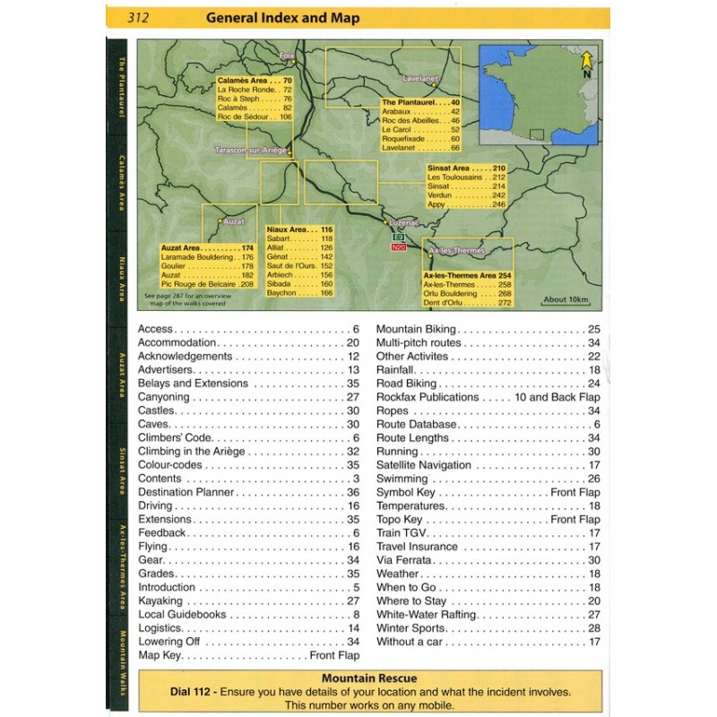 Folgende Gebiete werden im Führer vorgestellt: Arabauc, Roc des Abeilles, Le Carol, Roquefixade, Lavelanet, La Roche Ronde, Roc à Steph, Clamès, Roc de Sédour, Sabart, Alliat, Génat, Saut de l'Ours, Arbiech, Sibada, Baychon, Goulier, Auzat, Ric Rouge de Belcaire, Les Toulousains, Sinsat, Verdun, Appy, Ax-les-Thermes, Dent d'Orlu