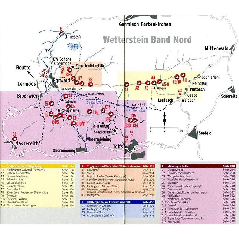 Alpine Klettereien und Klettergärten auf der Südseite des Wettersteins.