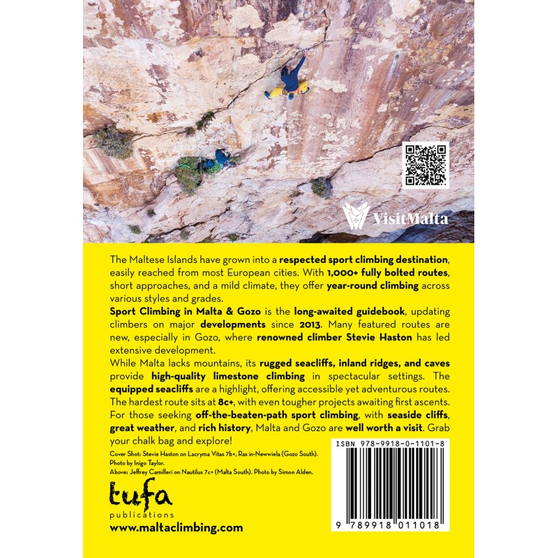 Endlich ist wieder ein Kletterführer für die Insel Malta und die kleine Nachbarinsel Gozo erhältlich. Mit etwa 1000 Routen und vielen neuen Sektoren hat sich die Anzahl an Klettermögichkeiten seit der letzten Auflage verdoppelt. Das Autoren-Trio um Simon Alden hat den Führer sehr übersichtlich gestaltet und Drohnenaufnahmen vermitteln ein klares Bild zu den Routenverläufen. Zu jedem Gebiet gibt es eine kurze Einführung und Infos über Übernachtungsmöglichkeiten, Einkauf etc. Die Infos zu den einzelnen Sektoren sind super mit Piktogrammen beschrieben und die Routenverläufe in Fotos eingezeichnet, so dass eine Orientierung vor Ort sehr einfach ist.