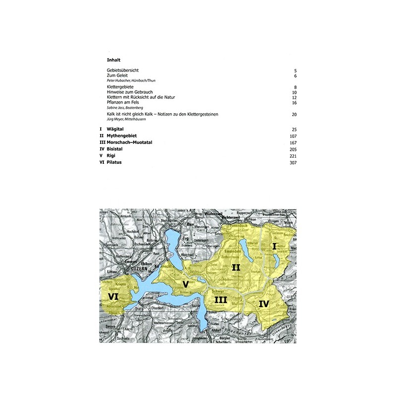 Folgende Gebiete werden im Führer beschrieben: - Wägital inl. Bockmattli - Mythengebiet - Morschach-Muotatal incl. Fallenflue - Bisistal - Rigi incl. Hochflue und Gersauer Klettergärten - Pilatus