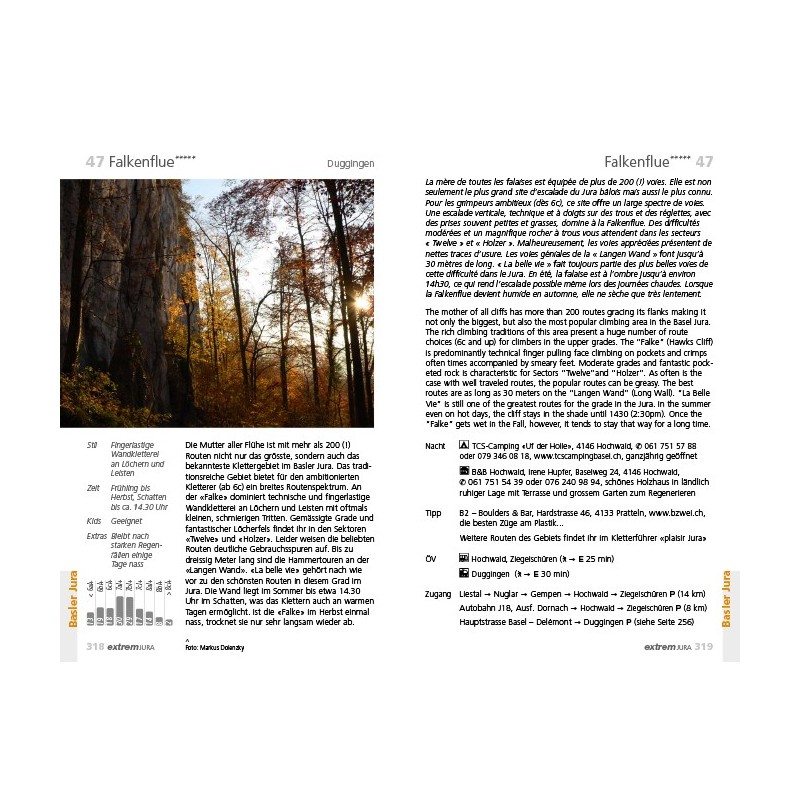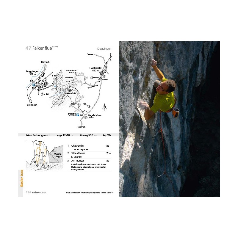 51 Gebiete zwischen Basel und Bern werden in diesem Führer vorgestellt, der die Extrem-Reihe des Filidor-Verlags abrundet und somit auch diese Region "extrem" gut beschreibt. Die vorgestellten Felsen sind eine strenge Auswahl aller Gebiete des Juras, die "Crème de la Crème" sozusagen, denn nicht alle Felsen an denen Routen existieren sind fest, andere wiederum sind stark abgeklettert, so dass diese keinen Spaß mehr machen. So bietet die Auswahl tolle Felsen, gemütliche Plätze und haufenweise harte Routen, die in gewohnt brillanter Känel-Qualität beschrieben werden.