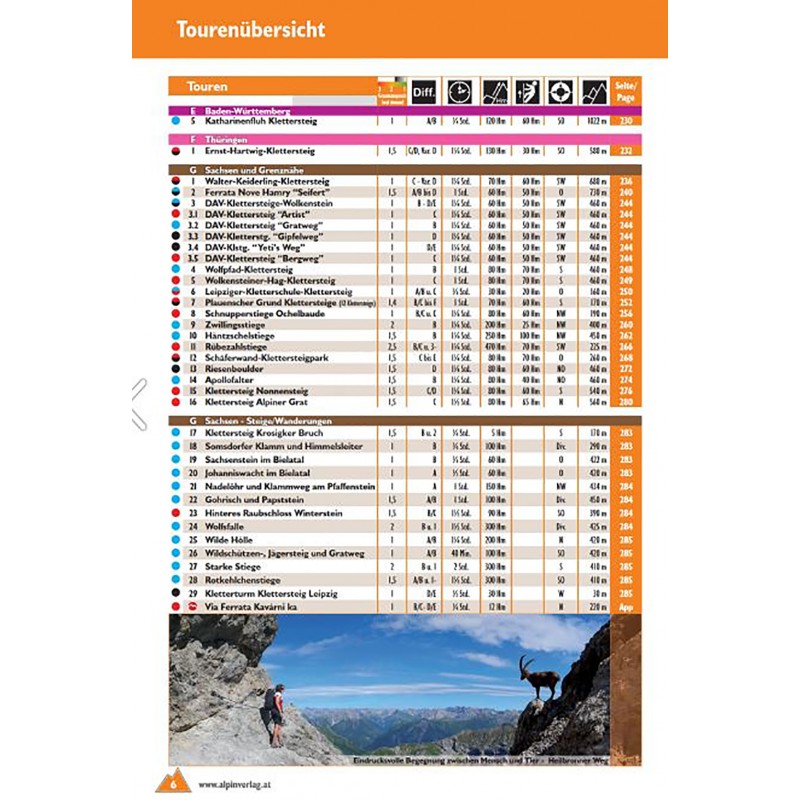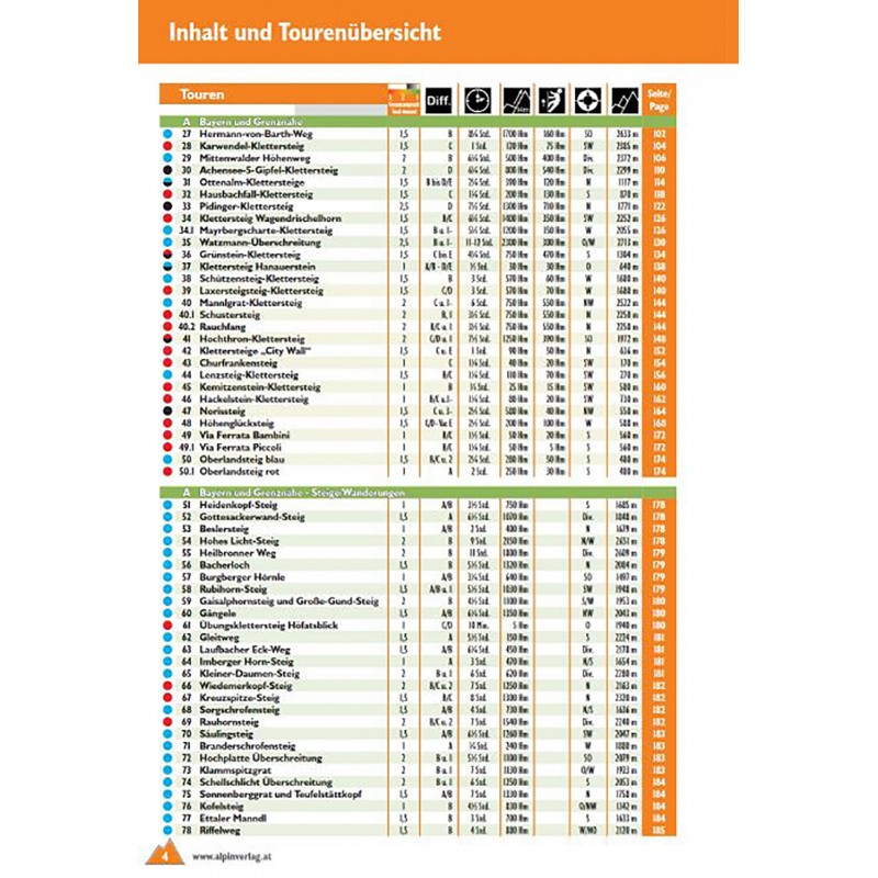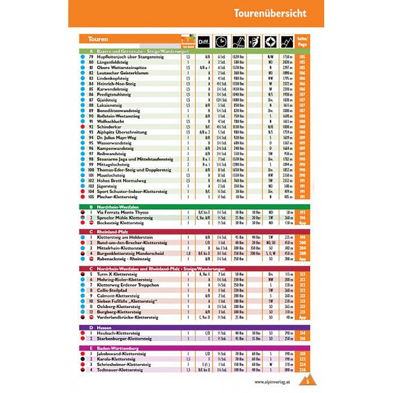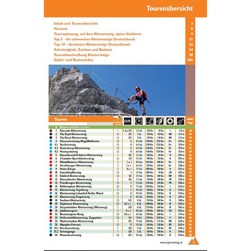 Zusätzlich zu den deutschen Klettersteigen wurden auch schöne Klettersteige in grenznahen Regionen aufgenommen. Ein profundes Führerwerk für Klettersteiggeher, die das vertikale Abenteuer suchen. Besonderer Wert wurde auf aussagekräftige Skizzen und Topos gelegt, in denen neben der exakten Bewertung der einzelnen Steigabschnitte auch auf mögliche Gefahrenstellen (z. B. Schneerinnen, Steinschlagzonen) hingewiesen wird. Leichte Steige mit Wanderwegcharakter werden im Buch nur kurz aufgelistet.