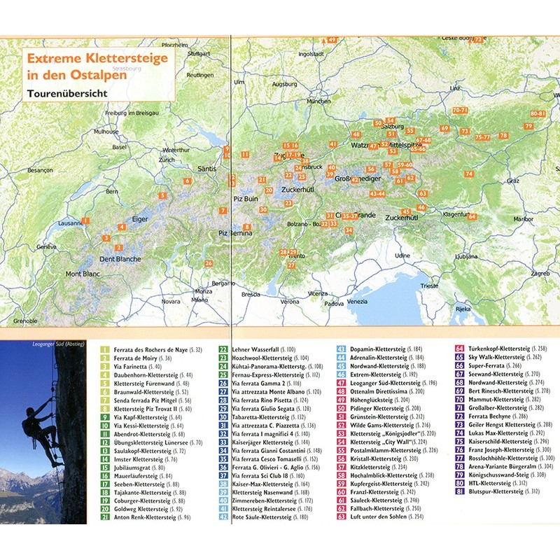 Neben den klassischen schweren Klettersteigzielen in den Ostalpen wurden auch alle neuen Sportklettersteige in dieses Buch aufgenommen.