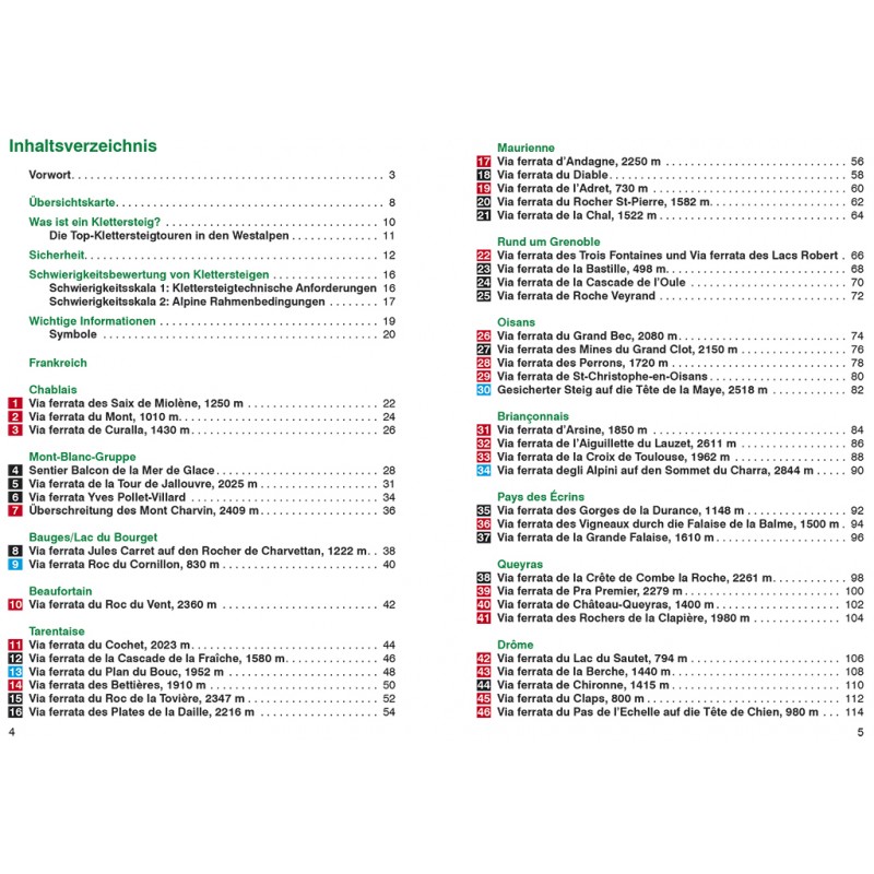 Alle ausgewählten Klettersteige sind exakt beschrieben und mit detaillierten Kärtchen versehen. Eine genaue Schwierigkeitsbewertung erleichtert dem Klettersteigfreund die rasche Auswahl, Tourensteckbriefe mit Hinweisen zu Ausgangspunkten, Höhenunterschieden und Gehzeiten, Anforderungen und Stützpunkten helfen bei der Planung der Touren sowie bei der Orientierung am Berg.