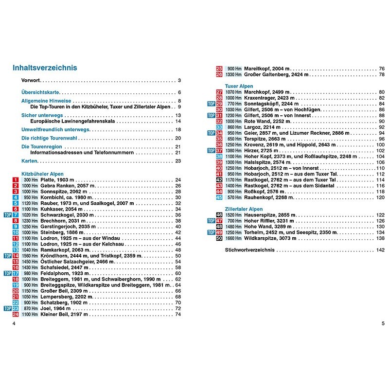 111 Farbabbildungen, 50 Tourenkärtchen im Maßstab 1:50.000, eine Übersichtskarte im Maßstab 1:325.000