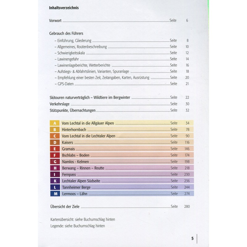 Die Lechtaler Alpen sind flächenmäßig mit Abstand die größte Gruppe der Nördlichen Kalkalpen. Auch der einzige Dreitausender der Nördlichen Kalkalpen, die 3040 m hohe Parseierspitze, ist in den Lechtalern zu finden. Skitouren in dieser Gebirgsgruppe sind zum großen Teil recht anspruchsvoll, deshalb ist dieser Führer vor allem für selbständige und erfahrene Skitourengeher bzw. Skibergsteiger geeignet. Nur wenige Ziele eignen sich für Skitourenanfänger, bei einigen Touren ist also mehr der Alpinist als der reine Abfahrtsgenießer angesprochen. Der Führer versteht sich als Auswahlführer – nicht jede Rinne, die mal befahren wurde, ist der Erwähnung wert. Zudem sollen auch für die, die sich selbst mit der Karte Skitouren erschließen wollen, noch Freiräume bleiben. Etliche Touren haben einen langen „Zustieg“, was aber in den Karten deutlich zu erkennen ist. Wichtig zu wissen: Die Nordseite der Lechtaler Alpen gilt als besonders schneesicher. Auch wenn andernorts fast nichts mehr geht, findet man hier oft bis weit ins Frühjahr hinein beste Bedingungen vor.